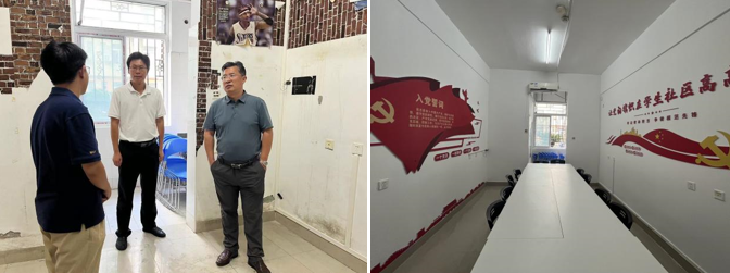 倾听需求,夯实保障,“实打实”解决急难愁盼。太阳成集团tyc9728党委副书记杨伟波及全体辅导员走进宿舍开展“三进三谈”,贴近学生生活,及时了解学生的现实困难、思想动态与心理状况,做到解决思想问题与解决实际问题相结合。学院以寝室为单位发放劳动用品,以班级为单位发放消毒用具,着力保障常态化大扫除的顺利进行。为配合学校“一站式”学生社区建设,解决学生社区活动开展的迫切需要,学院党委书记童泽望、党委副书记杨伟波到智慧园区进行调研,根据学校要求改造慧园四舍110宿舍为社区党团活动室,为学生党建向学生社区延伸提供有效载体;改造智12活动室为社区青创空间,打造专业化的生涯工作室,推动生涯指导融入学生日常生活。后续,太阳成集团tyc9728将依托社区党团活动室及青创空间开展思想引领、价值引导与行为规范,进一步探索“社区党建+志愿服务”、“社区党建+学业帮扶”等社区学生党建新范式。